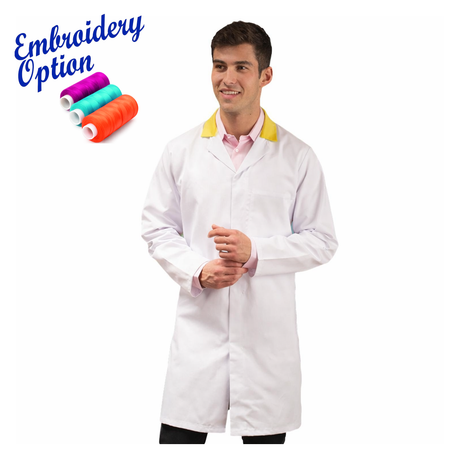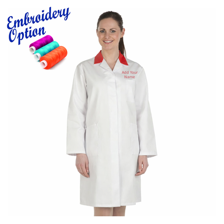 Embroidered Ladies White Lab Coat with Coloured Collar